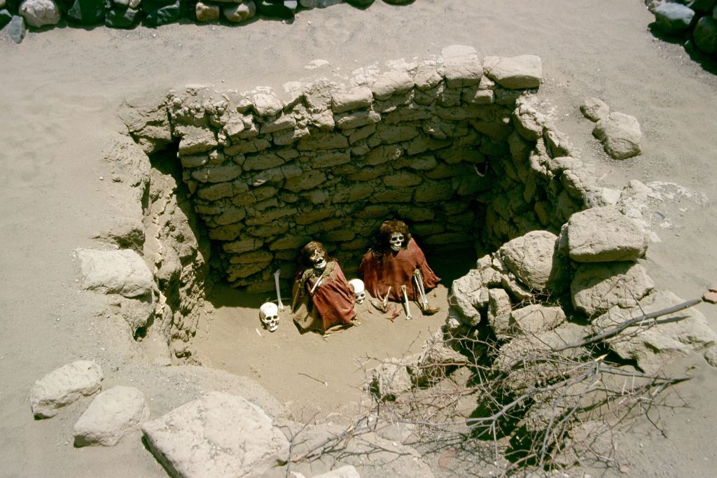 Die Nazca siedelten schon vor den Inka in Peru und schufen das Gräberfeld Chauchilla. Die Toten wurden in Gruben sitzend und zum Schutz vor Insekten besonders eingewickelt bestattet. Anders als ihre fast vollständig geraubten Grabbeigaben sind die Mumien noch vor Ort zu sehen.